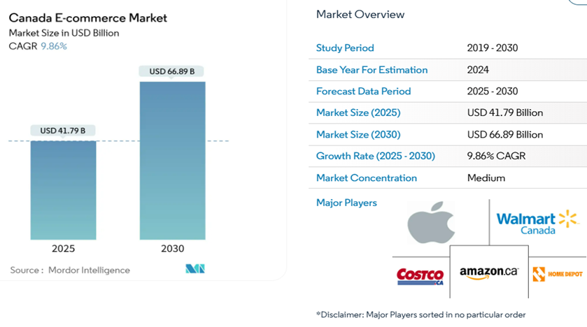 CANADA E-COMMERCE MARKET SIZE & SHARE ANALYSIS – GROWTH TRENDS & FORECASTS (2025 – 2030)
