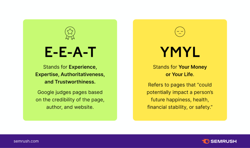 Handly, R.(2023). What are EEAT and YMYL in SEO and How to Optimize Them. Pris de: https://www.semrush.com/blog/eat-and-ymyl-new-google-search-guidelines-acronyms-of-quality-content/
