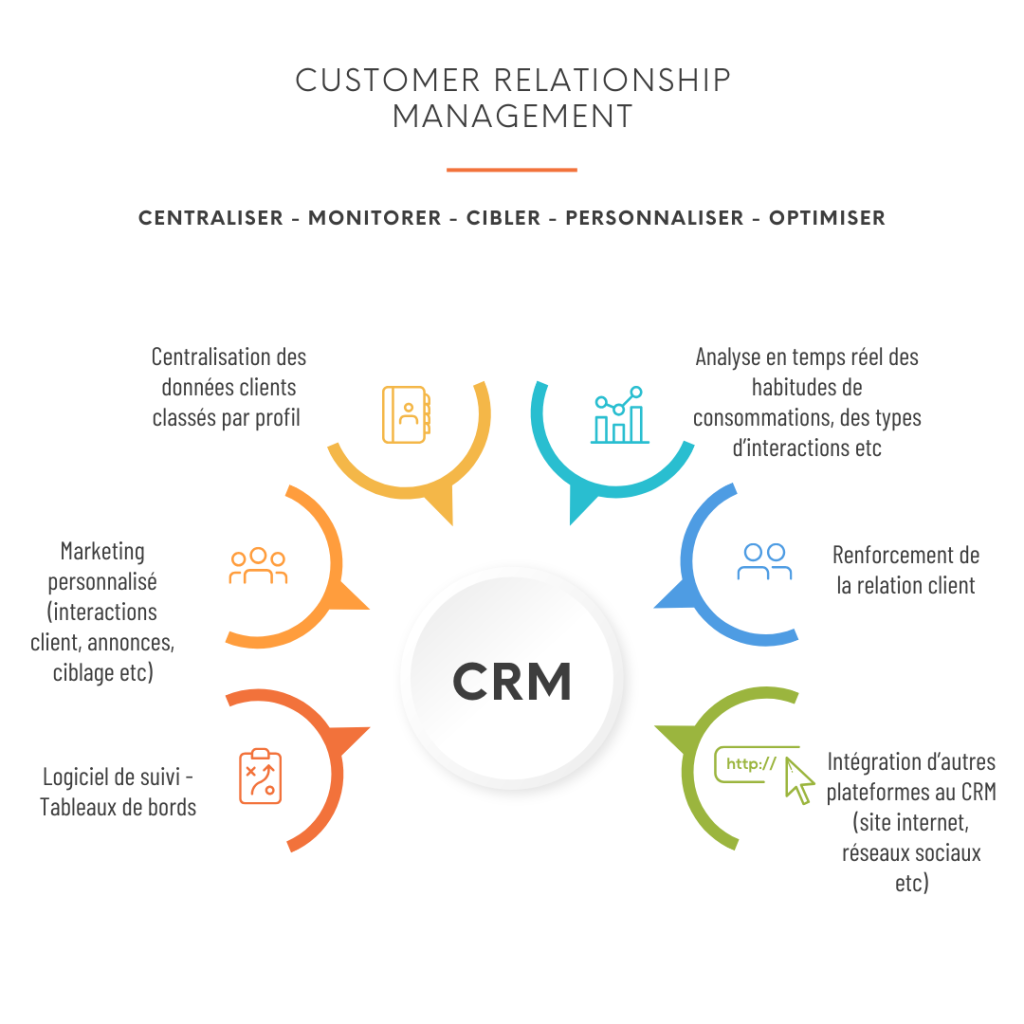 Les données utilisateurs peuvent être récupérées par exemple grâce à la liaison du site web, des réseaux sociaux ou encore de la boîte mail au CRM utilisé.