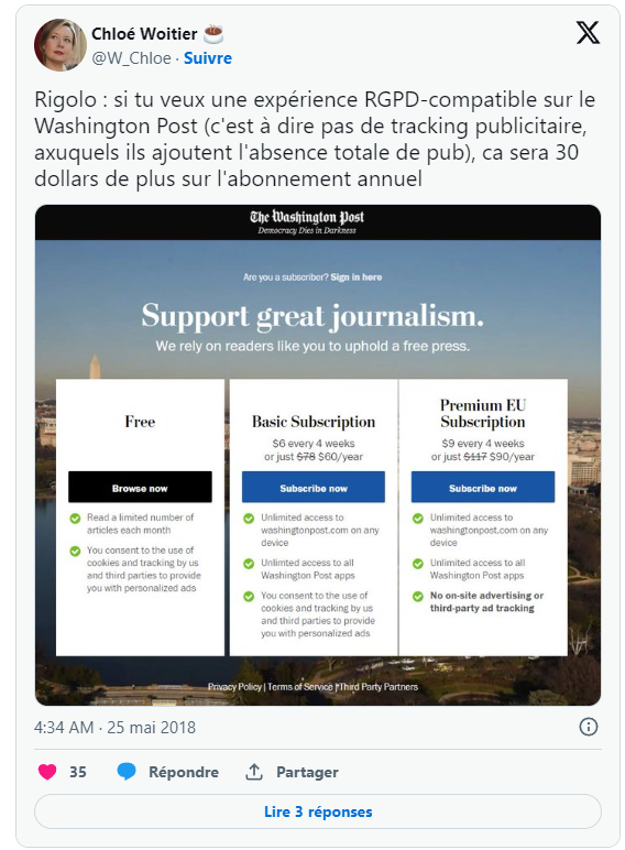 de contourner la loi. Depuis 2018, le RGPD est en vigueur en Europe, inspirant