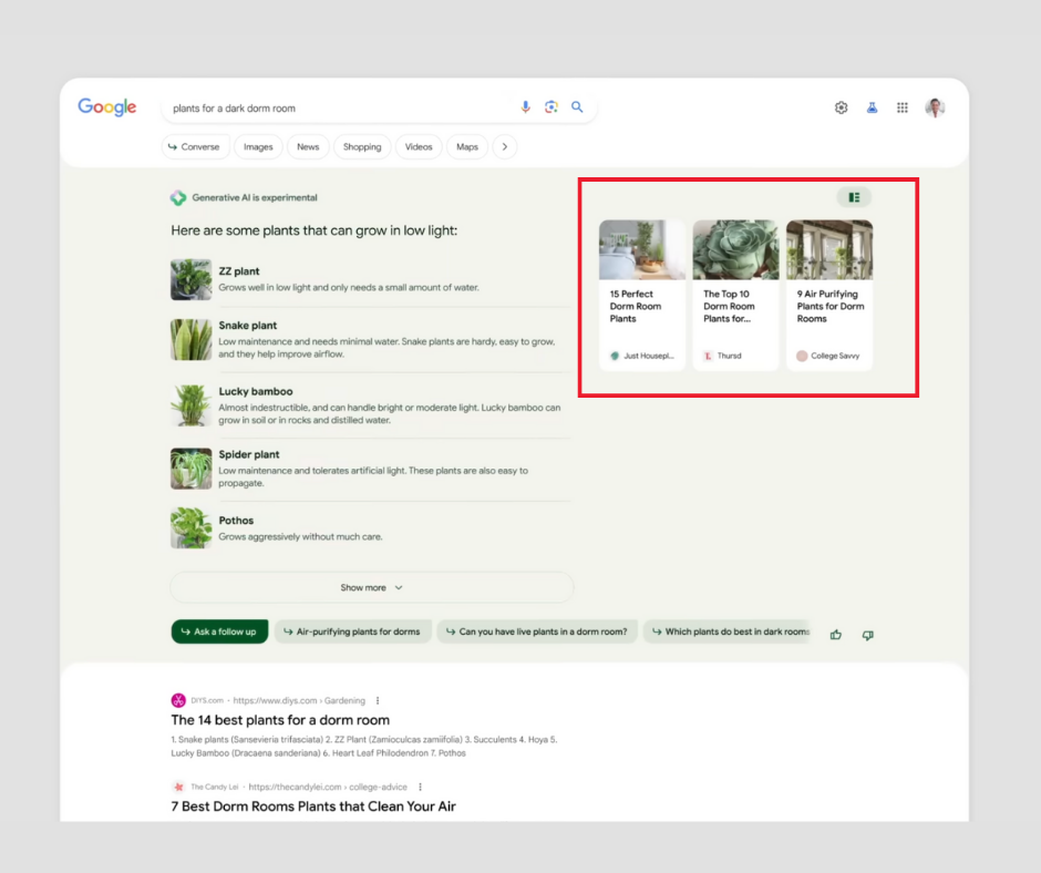 Grâce à l’IA générative au cœur de la SGE, les utilisateurs pourront, entre autres :
