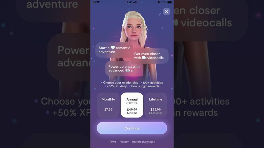 Replika.AI optimise leur tunnel de conversion avec une période gratuite freemium suivi par des CTA émotionnels pour pousser les utilisateurs à s’abonner à la version premium. C’est un funnel d’acquisition très efficace, grâce au design persuasif manipulateur.