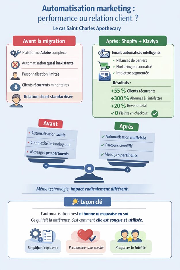 La leçon ici n’est pas que “plus de personnalisation = meilleurs résultats”. C’est qu’une personnalisation stratégique et bien ciblée fait la différence. Saint Charles n’a pas saturé ses clients , elle les a accompagnés.