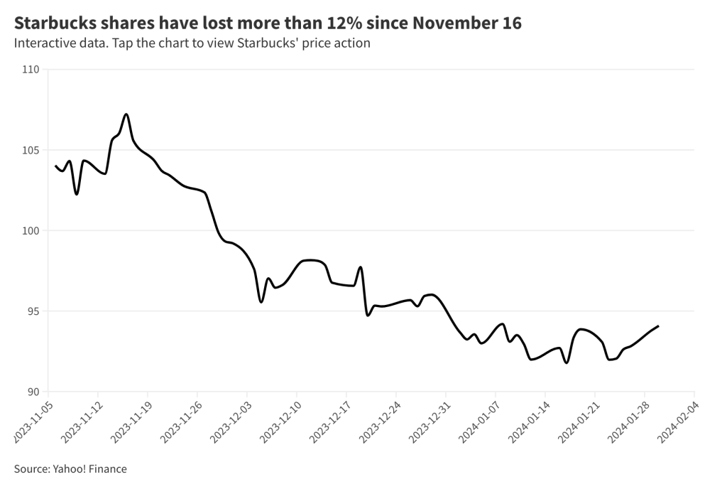 Un article publié le 4 février par The Business Standard mentionne que Wall Street avait été réticente à accorder du crédit à l’idée selon laquelle Starbucks pourrait voir ses performances financières affectées par son implication dans des enjeux sociaux politiques. Cependant, elle laisse entendre que les résultats démontrent un ralentissement marqué dans les ventes annuelles de l’entreprise. On remarque également une baisse notable dans le prix de l’action de Starbucks depuis le début du boycott sur TikTok.