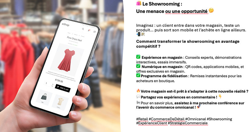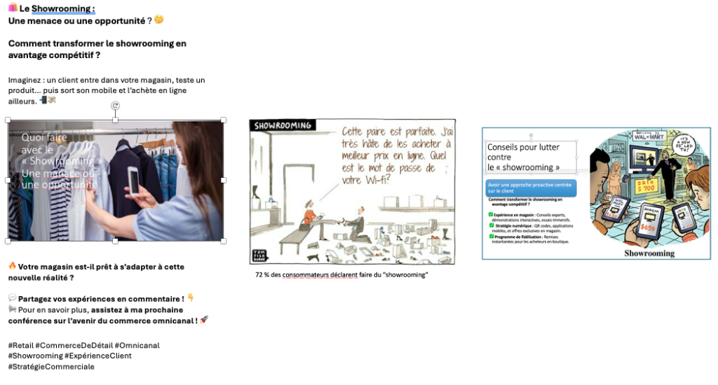 Quelques idées – Prendre un des sujets de la conférence et en faire un post. Désolé de la création. J’ai choisi le showrooming.