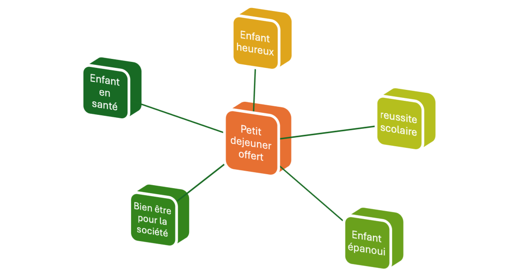 Ainsi, il apparait clairement, que d’un petit déjeuner offert, plusieurs effets bénéfiques découlent comme le montre le graphique qui suit.